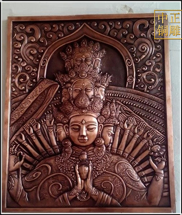 自古以來,中國人都是信封佛教的,那么大量的浮雕照壁出現在寺院就不足為奇了。我們在寺院中看見到的比較單一的寺院銅浮雕照壁就是淺浮雕,比較沒有技術要求,往往在院中呈觀賞性的作用。另一種深浮雕,這種比較復雜,層次感比較多,選擇很多透雕的手法,使得雕刻品不單單具有很高的觀賞性,也賦予了生動的社會意義。無論淺浮雕還是深浮雕,多出現在建筑物的墻壁上,作為墻壁的裝飾。