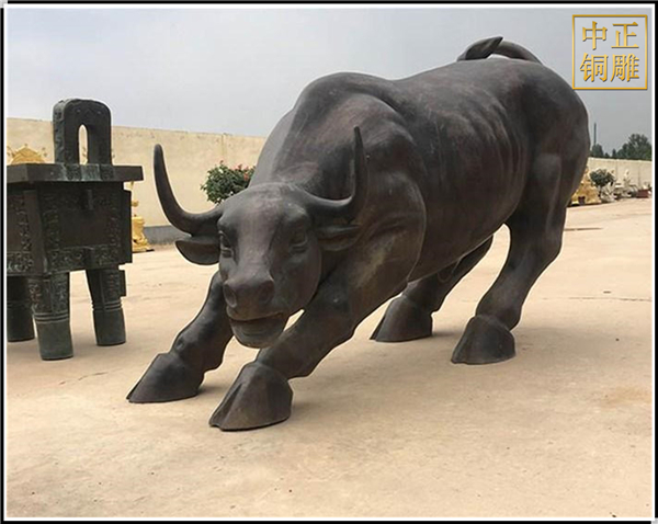 美國華爾街紐約證券交易所門前便有一只“旺市銅?!?是重金邀請著名塑大師及鑄造大家以5噸青銅精心澆鑄而成。此牛形體健壯,磅礴,人們以此牛來喻意證券行情的“牛市”發展,也是人們看好“牛市”的一種心理意識,表達對證券、全球金融、貿易、工商人士的祝福,希望他們牛氣相隨、事業發達,如今被更多人引伸為“幸運牛”。