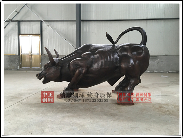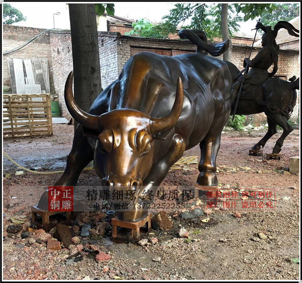 1992年,由著名藝術家韓美林根據金牛山傳說創作的巨型銅牛,被立在金牛山東側綠樹環繞的草坪中。銅牛身高、身長各15米,寬7米,重30噸,它身馱金寶,昂首翹尾,兩眼圓瞪,頗有氣勢。據了解,當年巨型銅牛是在北京分塊鑄成,運到濟南后再組裝起來的,“落成之時,盛況空前”。在巨型銅牛腳下的臺基前,還鐫著由著名書法家啟功先生手題的“天下第一?!本拮质蹋h繞臺基,則是有關金牛山傳說的浮雕。