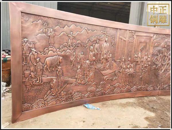 浮雕是雕刻的一種,雕刻者在一塊平板上將他要塑造的形象雕刻出來,使它脫離原來材料的平面。銅浮雕是雕塑與繪畫結(jié)合的產(chǎn)物,用壓縮的辦法來處理對象,靠透視等因素來表現(xiàn)三維空間,并只供一面或兩面觀看。