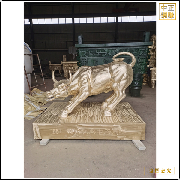 中正銅雕-黃銅華爾街銅牛鑄造廠 大型黃銅華爾街銅牛鑄造廠 黃銅華爾街銅牛鑄造廠家,我公司集科研、開發(fā)設計、普通鑄造、一次性整體澆鑄、精密鑄造于一體。本公司技術力量雄厚,設備,不但重視中國青銅器原有的藝術風格,還繼承了文物原有的藝術品味,在繼承和發(fā)揚古老文化的同時,更深一步為新老客戶定身量制各種銅制、鐵制工藝品等產品。