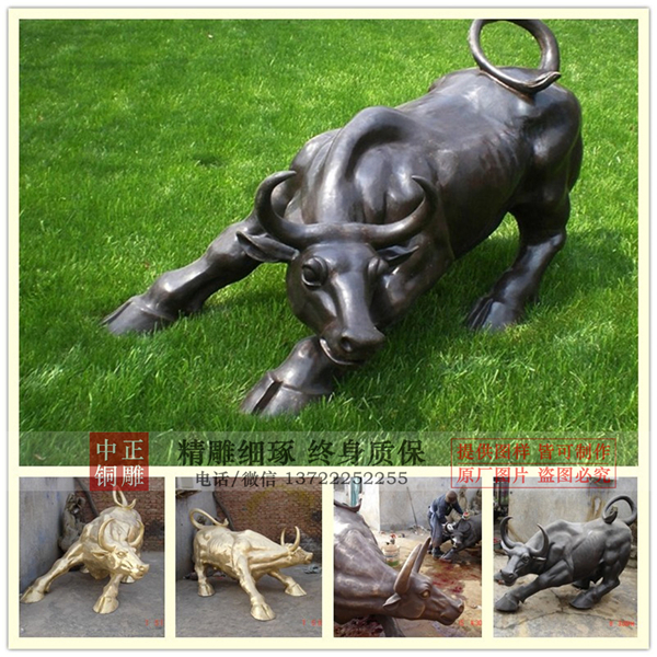 華爾街銅牛是意大利西西里島的藝術家阿圖羅·迪·莫迪卡的作品,本應該放在雕像館中。然而在1989年圣誕節時候,為了早日擺脫1987年股災的頹勢,以及對美國股市強勁的呼喚,被人抬到了紐交所門前一棵圣誕樹下,意外的是受到公眾的追捧與喜愛,然而最終沒能獲得紐交所工作人員的認可,最后被抬到了現在的華爾街。中正銅雕-華爾街銅牛制作,華爾街銅牛制作廠家,大型華爾街銅牛制作,我廠成立于2014年.我公司是唐縣銅雕的知名企業,主要以各種大型銅雕鑄造加工于一體.主要產品有,寺廟佛像、香爐、銅鐘、城市雕塑、動物雕塑、偉人雕塑、西方人物、銅浮雕等,品種齊全,價格合理。