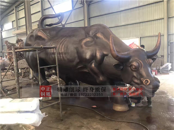 祭祀是古人政治生活中重要的活動之一,而牛是祭祀活動中最高貴的祭祀品。《說文解字》注:“牛,大牲也。”“牲”就是古人祭祀用的全牛。以牛作為祭祀用的最高規格,是漢代社會共有的觀念。《白虎通義》記載:“祭五祀,天子、諸侯以牛,卿大夫以羊,因四時祭牲也。”漢代只有皇帝祭祀才能使用全牛,并且有嚴格的程序規定。老百姓不能屠牛用于祭祀,“曉諭百姓,民不得有出門之祀,違者案論之,有屠牛者輒刑罰。”以牛襯托統治階級高高在上的等級觀念,使得牛在政治中有了特殊的象征意義。中正銅雕-銅牛制作流程,加工銅牛制作流程,定做銅牛制作流程,我公司集科研、開發設計、普通鑄造、一次性整體澆鑄、精密鑄造于一體。本公司技術力量雄厚,設備,不但重視中國青銅器原有的藝術風格,還繼承了文物原有的藝術品味,在繼承和發揚古老文化的同時,更深一步為新老客戶定身量制各種銅制、鐵制工藝品等產品,曾多次受到寺廟長老和美術學院教授的好評。
