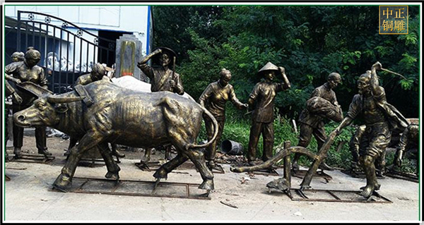 中正銅雕-牛拉犁銅雕塑、牛拉犁銅雕塑價格、牛拉犁銅雕塑廠家,我公司集科研、開發設計、普通鑄造、一次性整體澆鑄、精密鑄造于一體。本公司技術力量雄厚,設備,不但重視中國青銅器原有的藝術風格,還繼承了文物原有的藝術品味,在繼承和發揚古老文化的同時,更深一步為新老客戶定身量制各種銅制、鐵制工藝品等產品,曾多次受到寺廟長老和美術學院教授的好評。