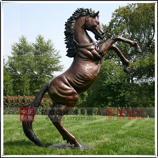 在古代,帝王出行,要有清一色的四批高大的馬拉車,非常有氣派,故擺放銅馬雕塑,也象征不凡的身份地位。人們常用“馬到成功”來祝福事業能順利取得成功,所以銅馬具有事業有成、馬到成功之意。人們常用“一馬當先”來形容在工作中順心如意、搶占先機,所以銅馬具有旗開得勝、馬到成功之意。馬代表著中國人自古以來所崇尚的奮斗不止、自強不息的性格與進取向上的民族精神。中正銅雕-大型銅馬廠家,河北大型銅馬廠家,保定大型銅馬廠家,我廠是一家以設計、制作、安裝為一體的發展型企業。公司坐落在中國銅雕之鄉---河北唐縣,成立于1984年。公司自成立以來,以優質的雕塑工藝,優異的性價比,一體化的銷售網絡,高效、完善的售后服務,飛速發展。成為了擁有設計、銷售、生產、安裝、維護為一體的銅雕塑制作商。