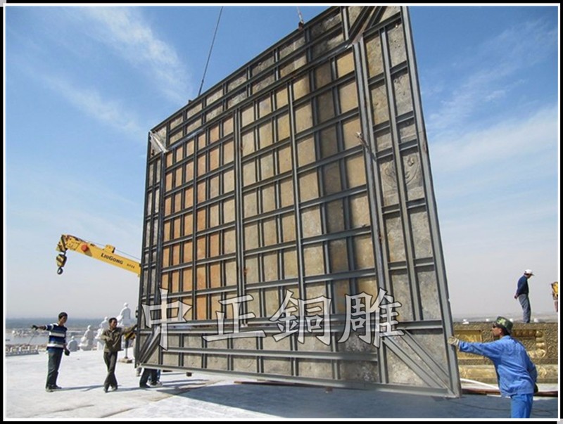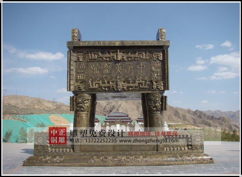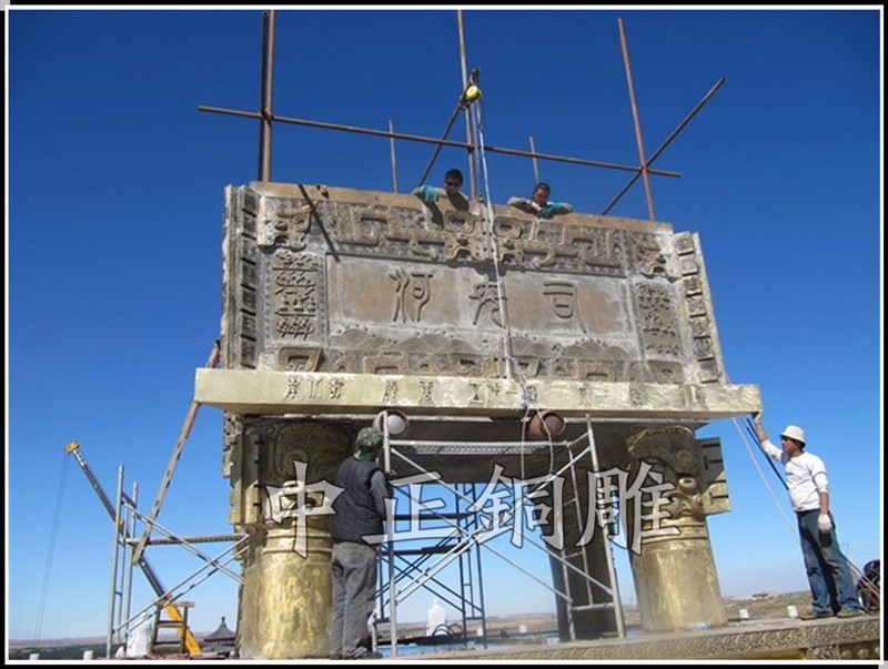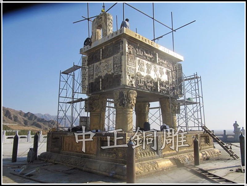 安裝于寧夏回族自治區(qū)青銅峽《中華黃河壇》景區(qū)的中華黃河鼎,銅鼎總高6.3米,采用黃銅澆鑄,分塊組裝焊接工藝,紋飾精雕細(xì)琢,大銅鼎氣勢恢宏,總重13800公斤,歷時(shí)5個(gè)月制作完工。